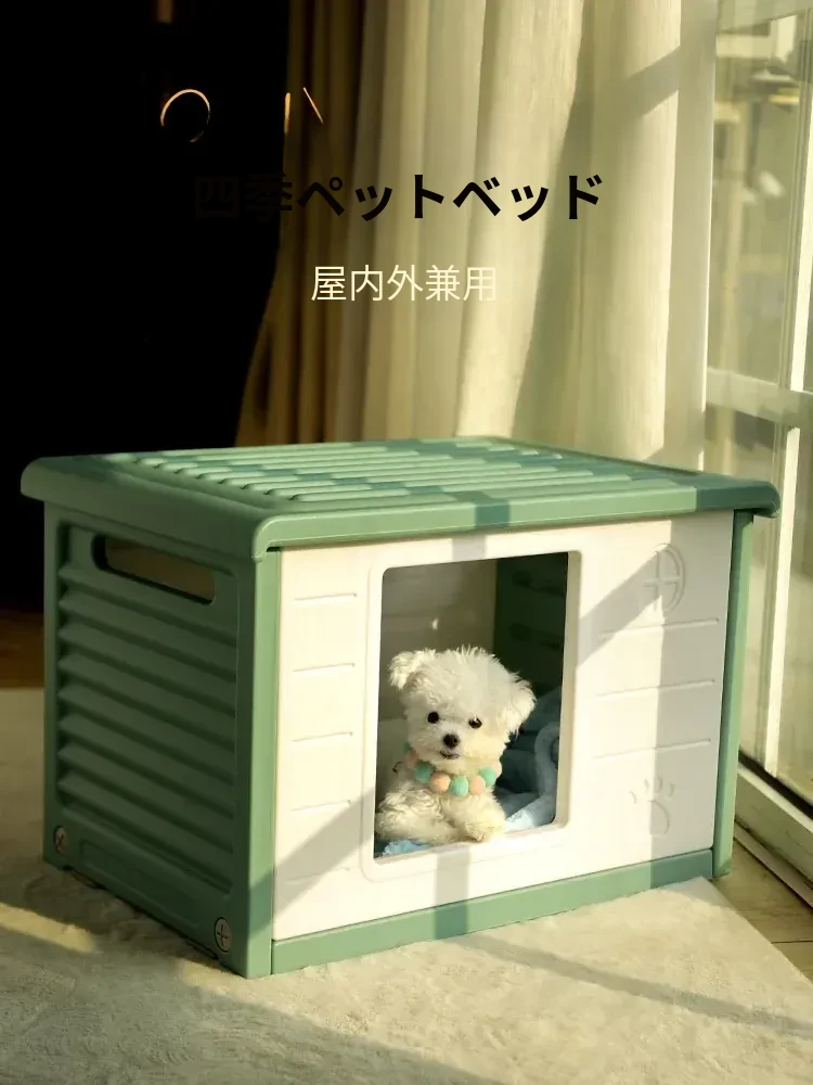 四季対応!半封閉型の犬小屋 - 室内外兼用、雨天も安心!洗えるデザインで、小型犬に最適なペットハウス。愛犬の快適な空間を提供します!