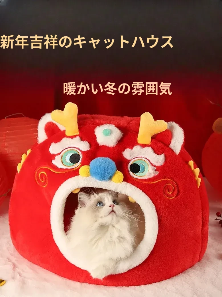 新年限定!暖かい冬の猫の隠れ家 - 四季兼用の快適な猫ベッド、愛猫を包み込む封閉式デザインで、寒い冬でも安心してぐっすり眠れます!