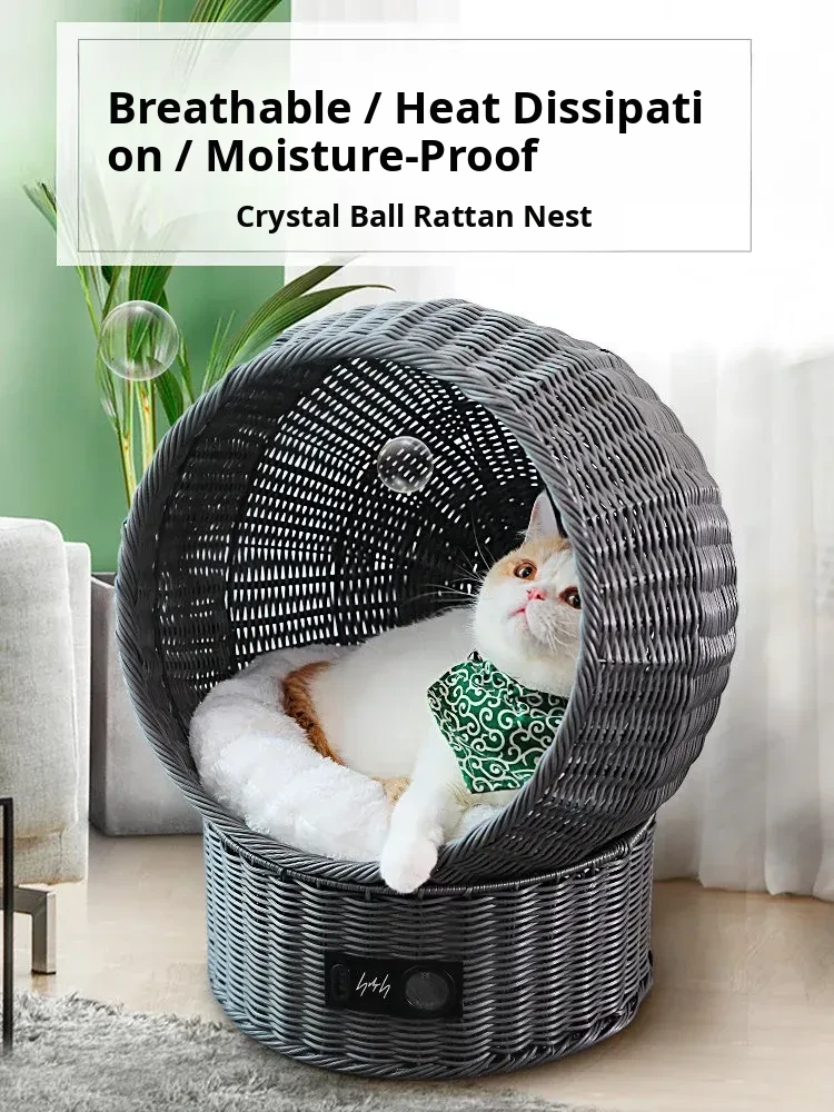 Cozy Woven Cat Villa - Summer-Ready Bamboo Nest for Kittens, All-Season Design, Perfect for Keeping Your Feline Friend Cool and Comfortable!