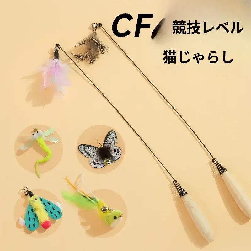 CFA認定!競技用キャットボールで遊ぼう!長い棒タイプの猫じゃらし、交換用フェザー付き!子猫や成猫も大満足の猫玩具、猫ちゃんのストレス解消に最適!