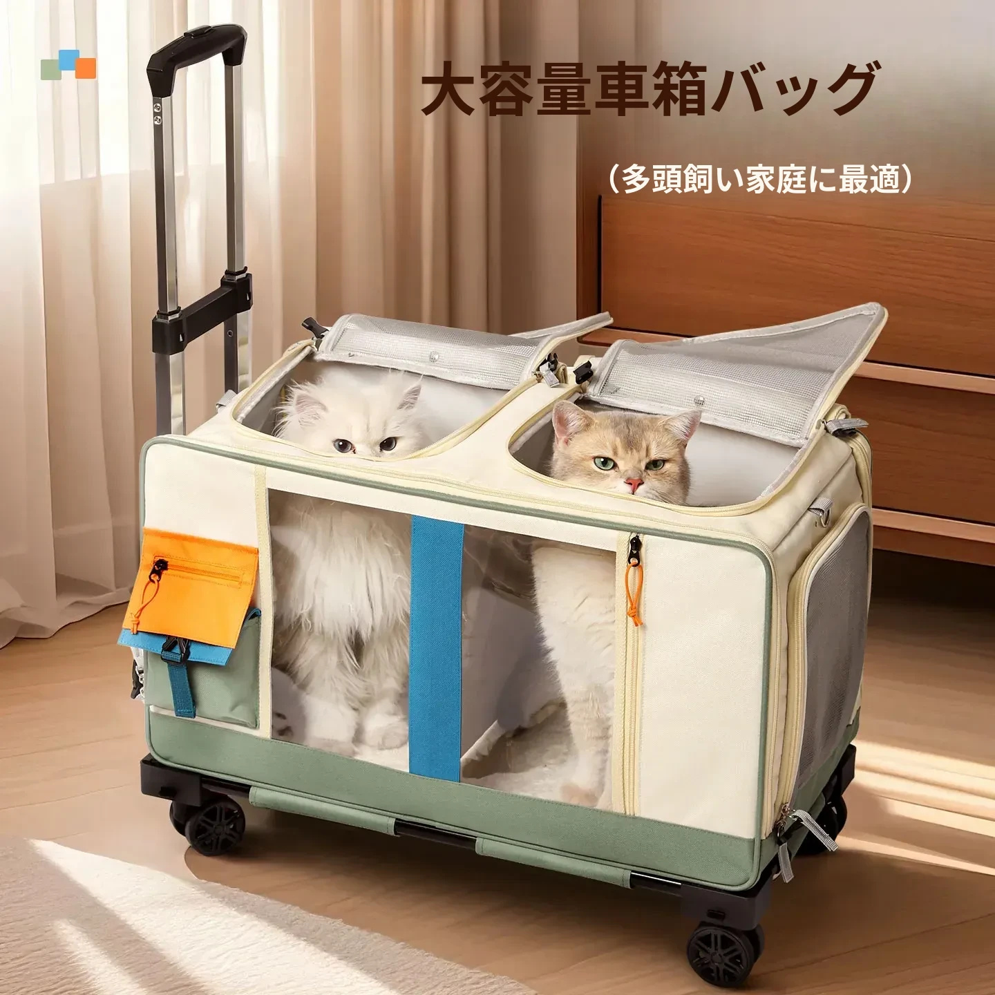 猫と犬のための大容量ペットキャリーカート - お出かけに最適な便利なリュック型キャリー、複数の猫にも対応!スムーズな移動を実現するキャスター付き、安心して愛するペットと一緒にお出かけしましょう!