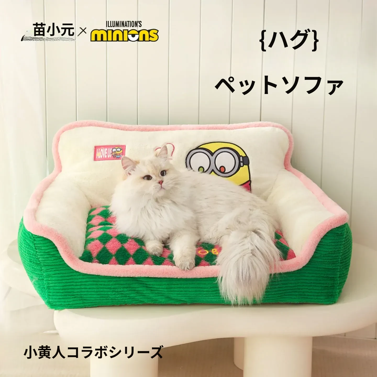 ニャオシャオユエン×ミニオンコラボシリーズ!冬のペット用暖かソファベッド、洗濯可能で快適な寝床。愛するペットにぴったりな、可愛いデザインで安心の居場所を提供します!