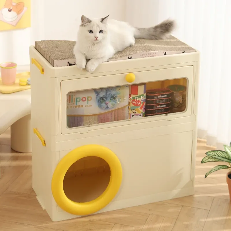 多猫家庭に最適!四季対応の安全感あふれる封閉式猫ベッド - 冬にぴったりなダブルレイヤー構造の猫屋。愛猫のための居心地抜群の空間を提供します!