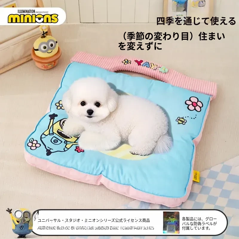 小さな黄色のキャラクター付き!四季折々に使える加菲猫のぬいぐるみコーギー犬・猫用ペットマット。夏はひんやり、撥水加工で安心!快適な眠りを提供する万能マット。