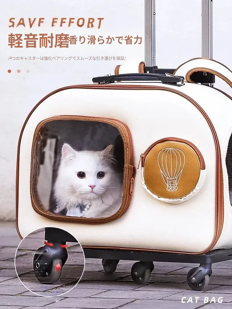 猫と犬のための大容量ペットキャリーカート - お出かけに最適な便利なリュック型キャリー、複数の猫にも対応!スムーズな移動を実現するキャスター付き、安心して愛するペットと一緒にお出かけしましょう!