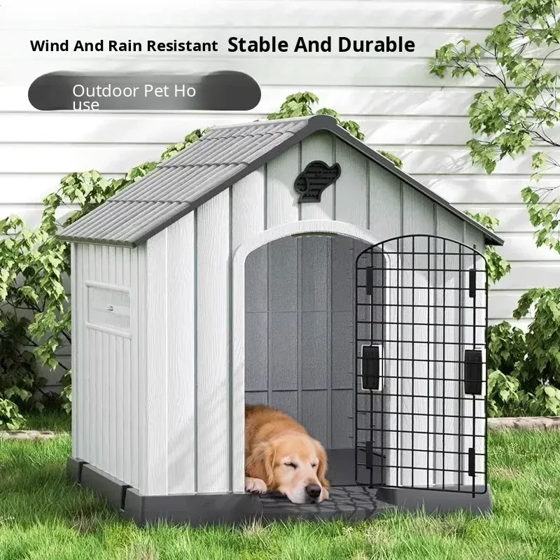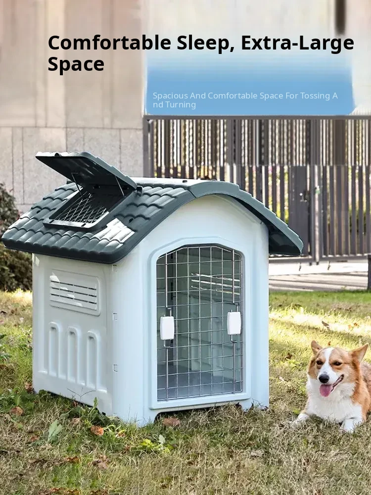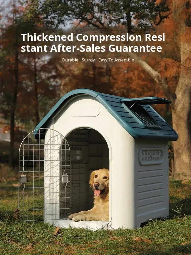 All-Season Outdoor Dog House for Medium to Large Dogs - Plastic Villa with Rain and Sun Protection for Summer Use