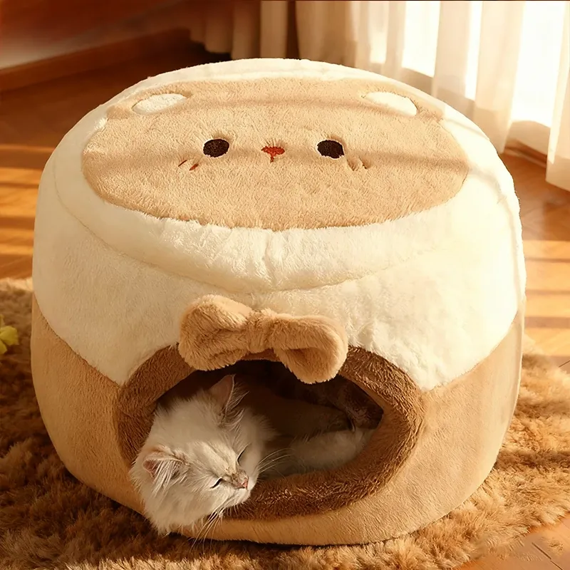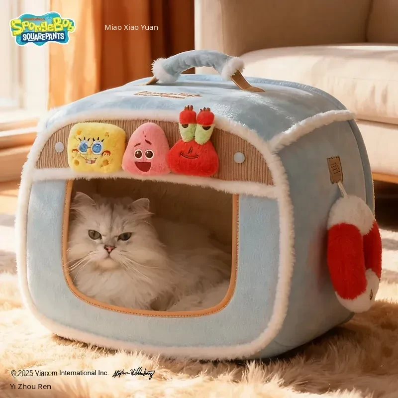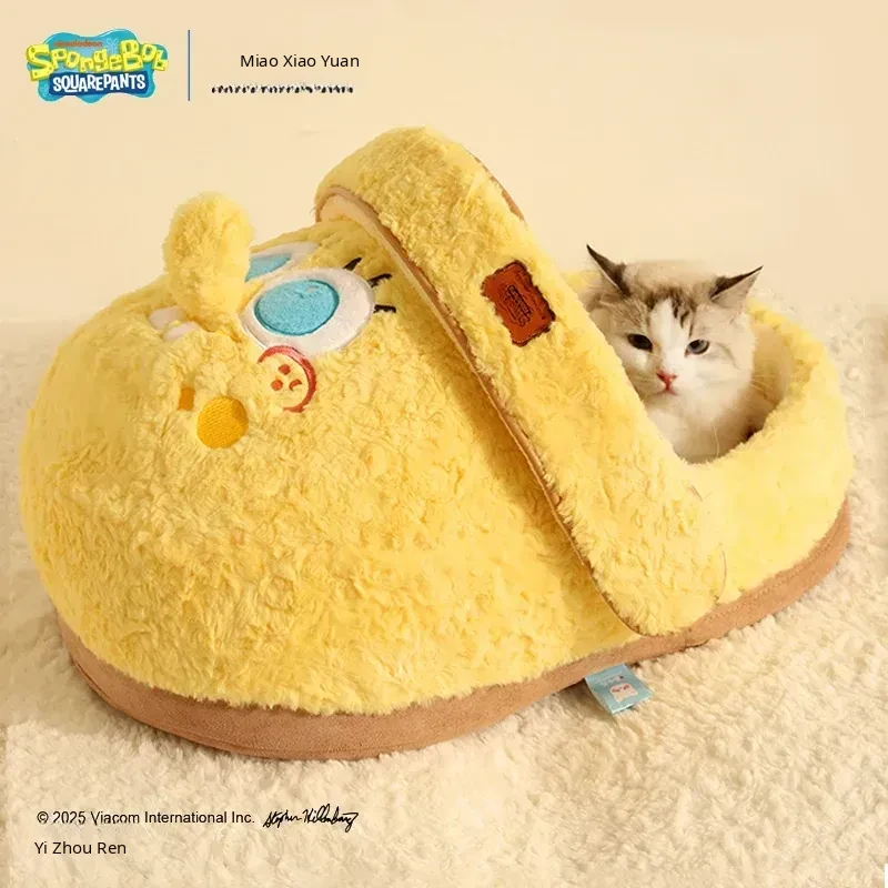 Cozy Winter Cat Cave - Thickened SpongeBob-Style Enclosed Bed for Cats, Perfect for Cold Weather! Keep Your Feline Friend Warm and Snuggly This Winter!