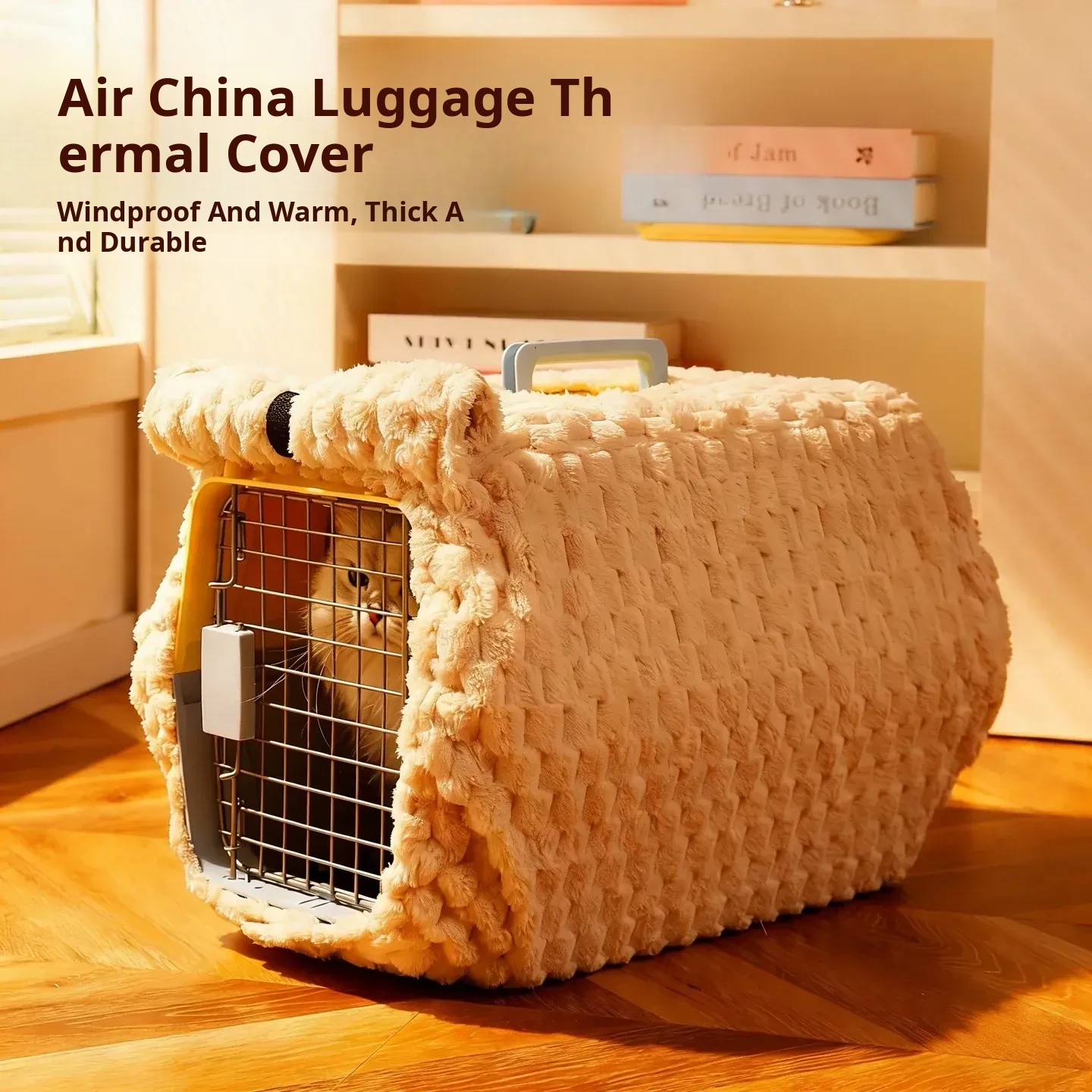 Pet Airline Carrier with Insulated Cover - Winter Windproof Dog and Cat Travel Crate, Portable for Air Travel and Car Use, Ideal for National Airlines