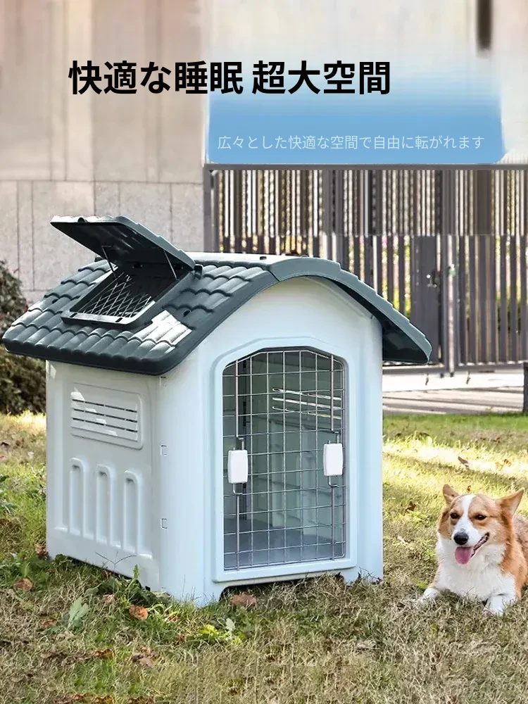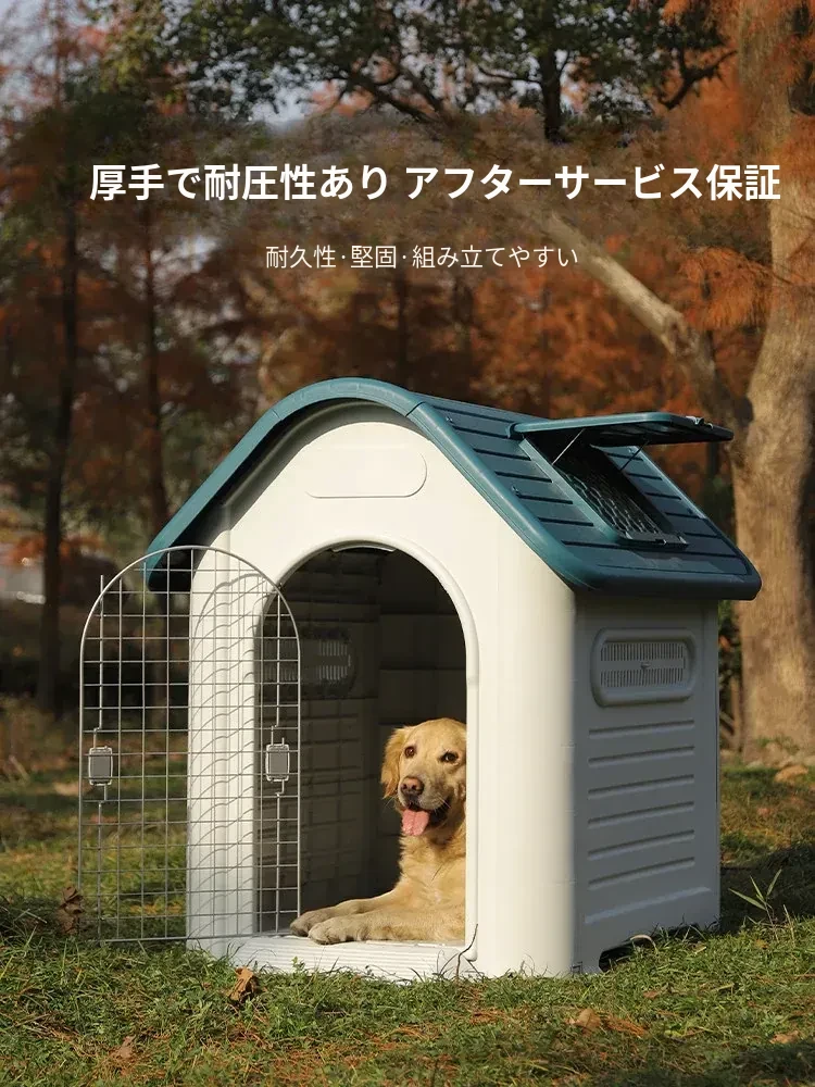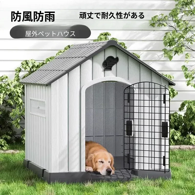 四季対応の中大型犬用プラスチック犬小屋 - 夏のアウトドアに最適!雨や日差しから守る快適な別荘。愛犬のための理想的な住まいをお届けします!
