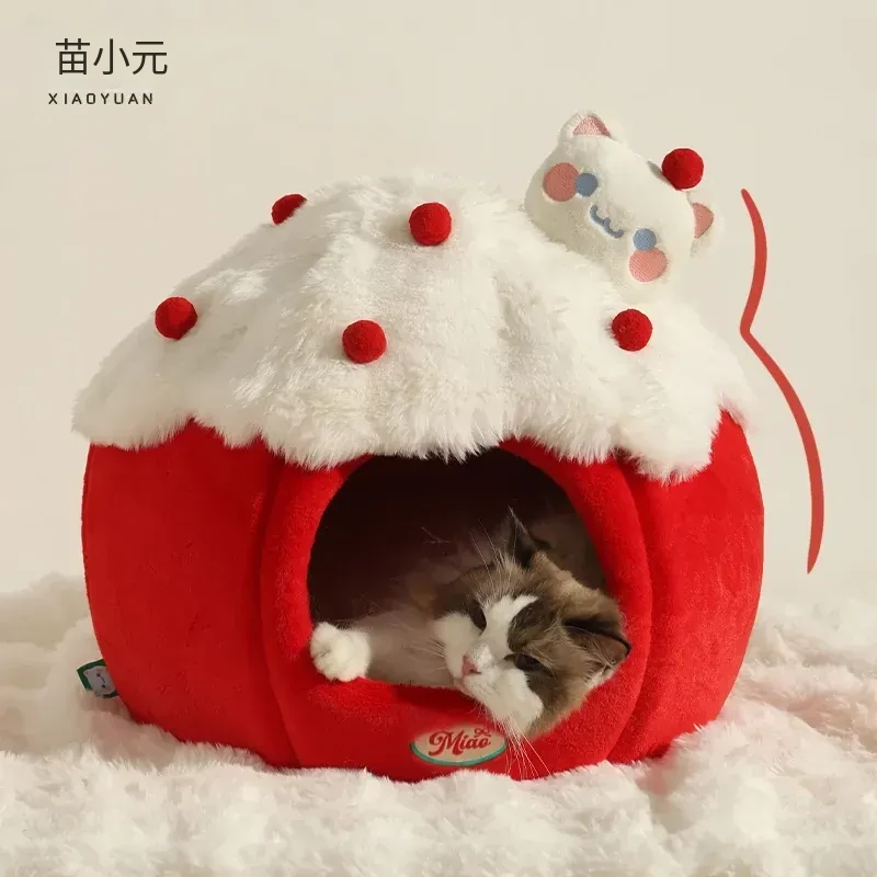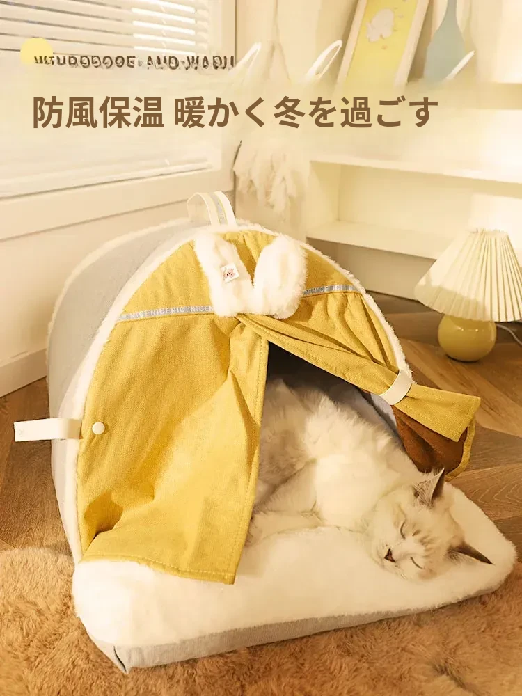 冬の暖かさを提供!喵小元キャットテント - 大型猫にも最適な封閉式デザイン、ペット用マット付き。寒い季節に愛猫に安心感を!