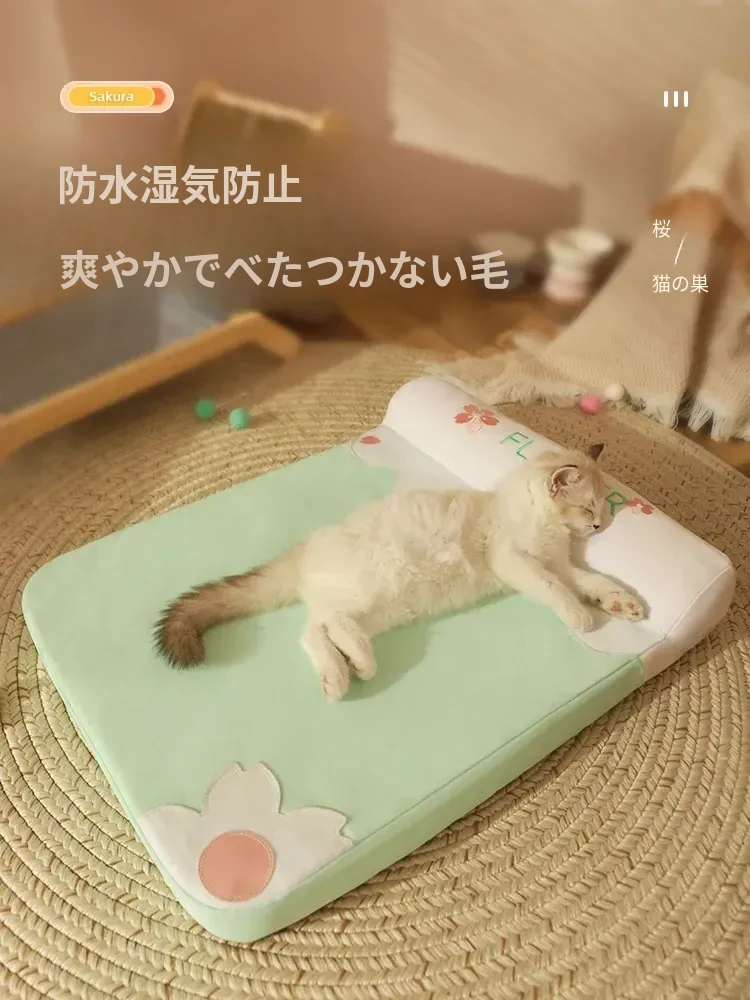 四季使える!夏にぴったりの取り外し可能な猫用マット。快適な睡眠をサポートするペットベッド、犬用もOK。猫ちゃんが喜ぶ、清潔で居心地の良い空間を提供します!