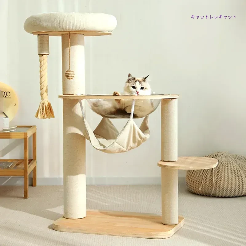 猫のキャットタワー&爪研ぎ&ベッドが一体化!四季折々に最適なコンパクトな跳び台&爬柱。小型猫にぴったりのスペースを取らないビューポイント!あなたの猫ちゃんが大喜びすること間違いなし!