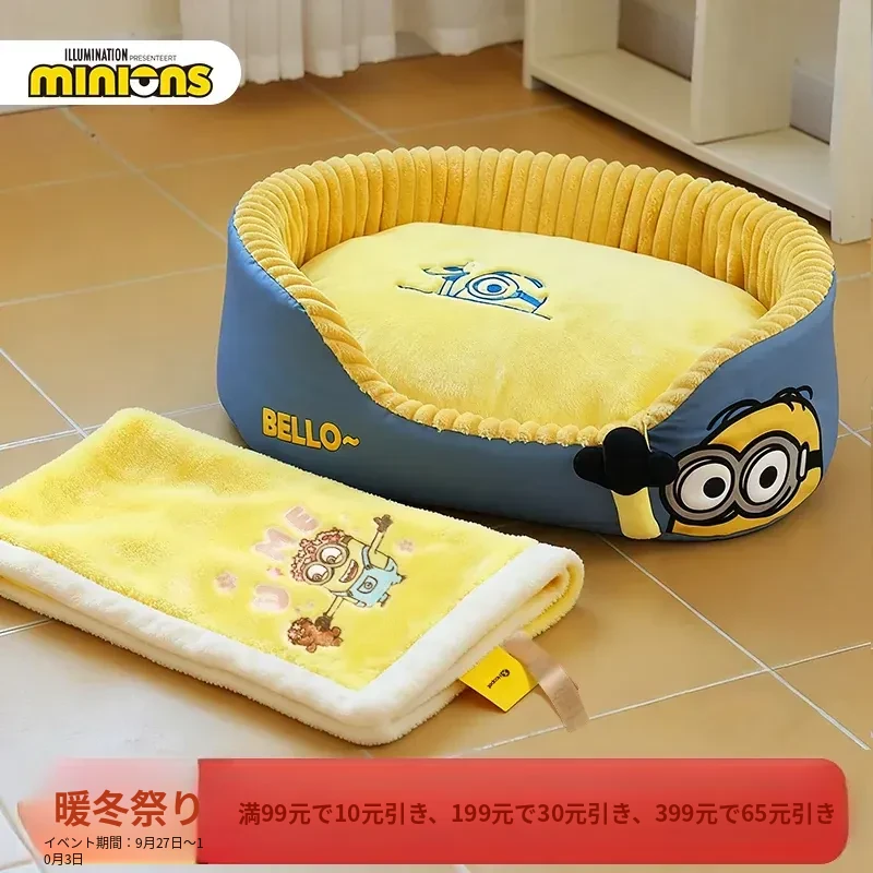 ミニオンデザインの猫用クッション - 秋冬にぴったりな保温性抜群の厚手ペットソファ。汚れに強く、小型犬や猫が快適に眠れる優れた寝具です!