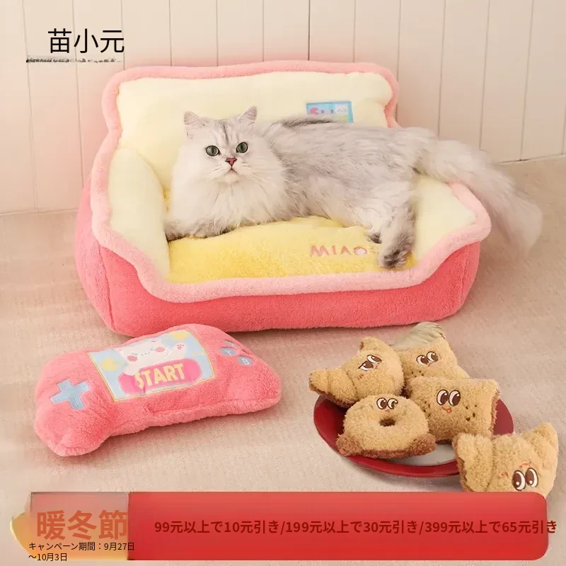 冬にぴったり!喵小元の猫用暖かいベッド - 四季使えるペット用品、ふわふわマットで快適な眠りを実現。寒い季節も安心してお休みできる猫ハウス。