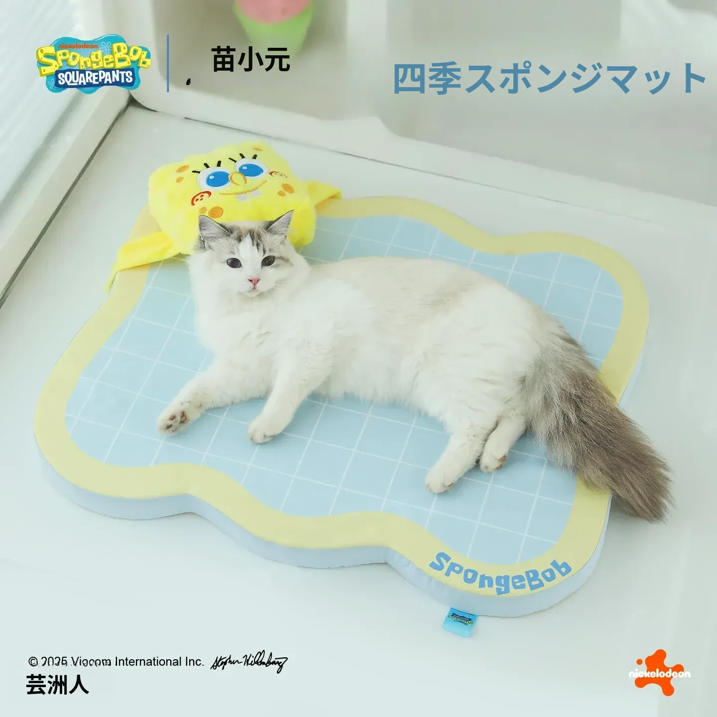 喵小元×海绵宝宝コラボ!猫と犬のための夏用クールマット、滑り止め付きで快適な睡眠環境を提供します。愛するペットのために、心地よいひんやり感をお届け!