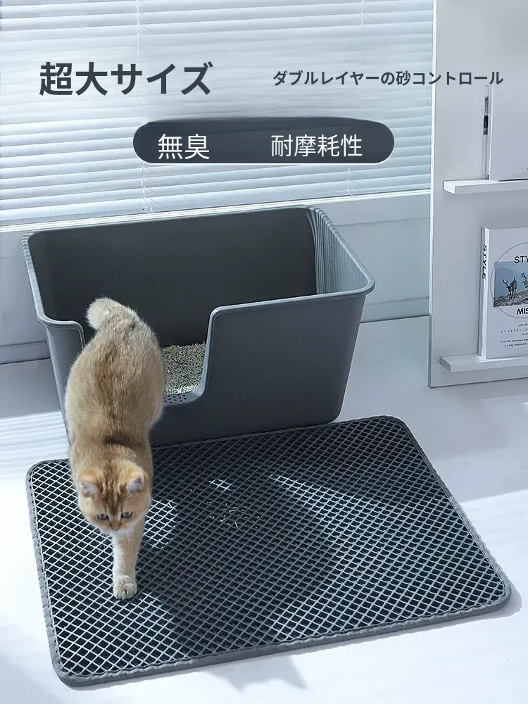 超大サイズの二重フィルター付き猫砂マット - 猫砂が外に飛び散らない!トイレ周りを清潔に保つための必需品。ペットの快適さを追求したデザインで、あなたの愛猫も喜ぶ!