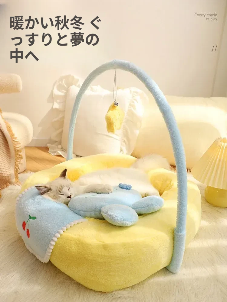冬にぴったり!喵小元の猫用暖かいベッド - 四季使えるペット用品、ふわふわマットで快適な眠りを実現。寒い季節も安心してお休みできる猫ハウス。