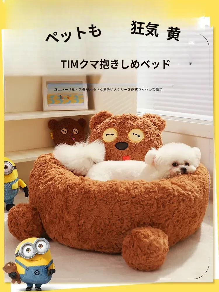ミニオンデザインの猫用クッション - 秋冬にぴったりな保温性抜群の厚手ペットソファ。汚れに強く、小型犬や猫が快適に眠れる優れた寝具です!
