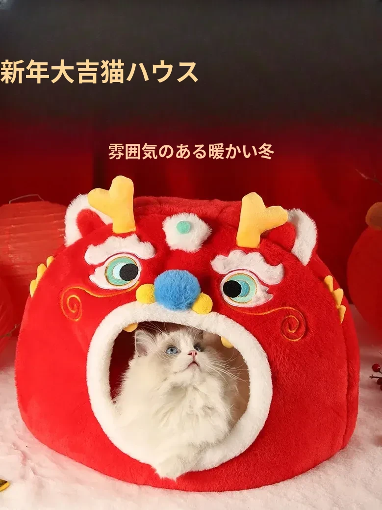 冬も暖かい!猫ちゃんのための快適な半封閉式猫ベッド - 四季通用、ふわふわで心地よい寝床を提供します。トレンドの猫ハウスで、愛猫を優しく包み込む冬の必需品!