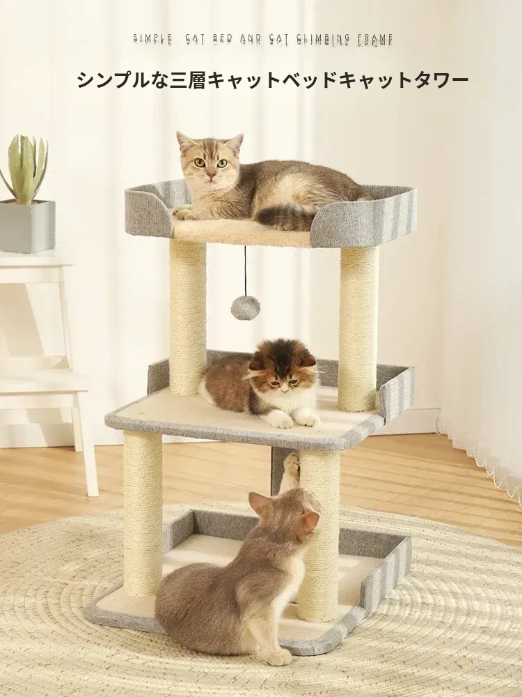猫ちゃんのための多機能キャットタワー!爪研ぎ、ベッド、跳び台が一体化したデザインで、四季を通じて快適にご利用いただけます。小型住宅にもぴったりの省スペース設計で、愛猫の楽しい遊び場を提供します!