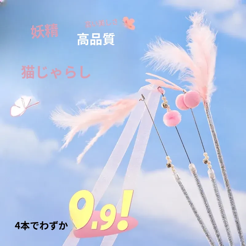 フェアリーキャットボール羽毛おもちゃ - 猫ちゃんを夢中にさせる!長いロッドで遊び心満載、幼猫や成猫に最適なペット用品。ストレス解消と楽しいひとときを提供する、猫のおもちゃの決定版!